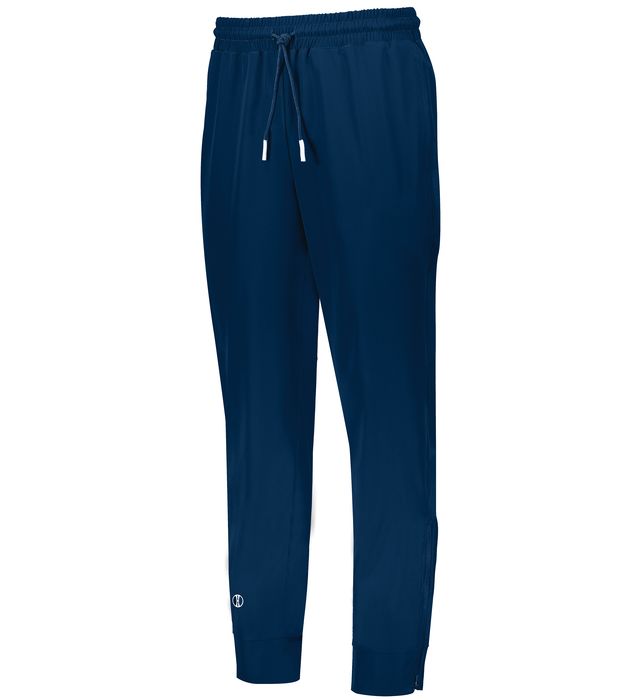 Weld Jogger 90% polyester/10% spandex, 4-way stretch woven fabric with covered elastic waistband with outside drawcord and silicone dipped tips (inside drawcord on XS-S), front side seam and back pockets, tapered leg, zipper on outside lower leg, articulated seaming at the knees, and is water repellent. Whether you play on the court or on the field, the Weld Jogger provides breathable coverage while you limber up for the game. These water repellent 90% polyester/10% spandex joggers sport a covered elastic waistband, as well as rib knit banded cuffs. Comfortable on field and off, these joggers aren’t just for athletics. Enjoy these joggers on rainy days while running errands, or while lounging around the house. Available in Men’s and Women’s sizing. Colors Available: Black, Navy, Carbon.